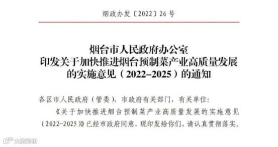 近日烟台预制菜正式发布。即为关于加快推进烟台预制菜产业高质量发展的实施意见。