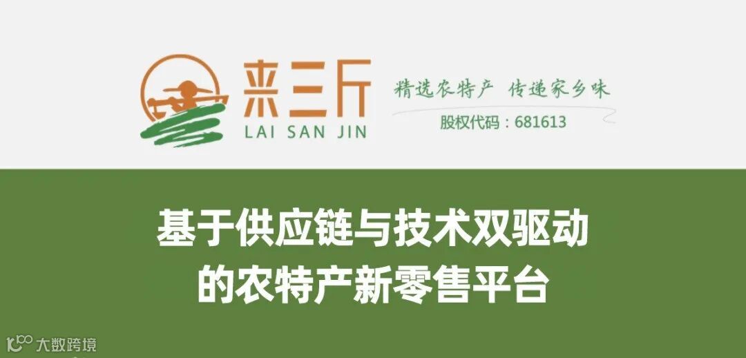 来三斤,国内领先的数字乡村综合服务商、数字(预制菜)产业园投资建设运营商,业务涵盖平台、供应链、数字技术、产业园以及政企服务等,旗下拥有来三斤、播三斤、三斤有礼等多个知名数字云平台。
