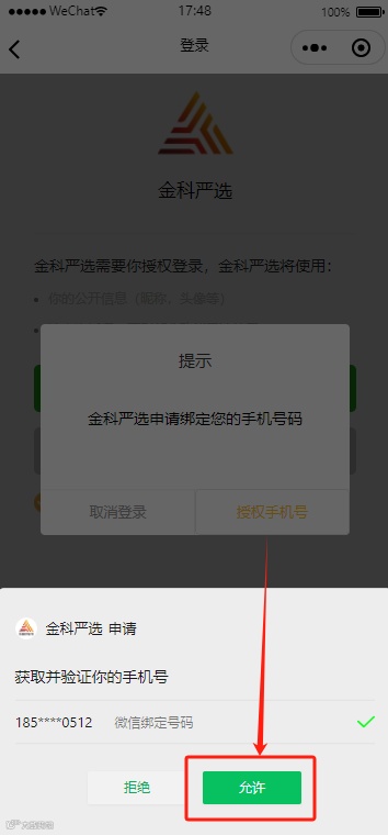 3.授权手机号后即可完成登录(游客身份无法累计积分,无法参与活动)。