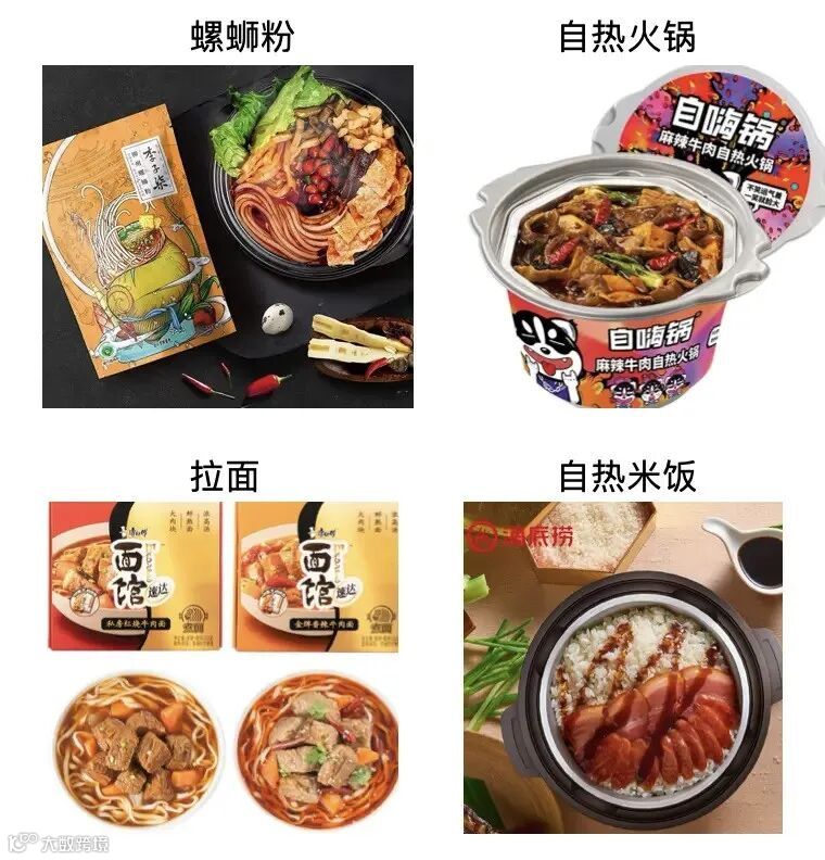 具有代表性的是“自热系列”,例如自热火锅、自热米饭,自热米线、懒人串串等,顾名思义就是不开火不用电,只要将特制的发热包放在食盒底部,再倒入一杯凉水即可制作出热气腾腾的食物。