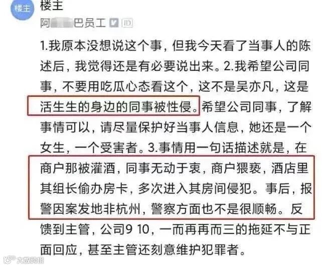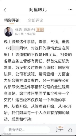 对于一家拥有25万人的巨型公司,“女员工被侵害”事件背后反映得却是公众对阿里的事件处理过程的惊奇与愤怒。