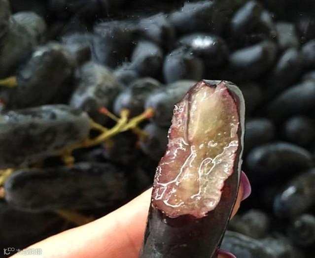 好看好吃 传统的葡萄是圆形或者椭圆形的,蓝宝石葡萄呈长椭状,果子没有籽,肉质口感上佳,体型比普通的葡萄要大差不多2倍,果实的含糖量是传统葡萄品种的3倍,吃起来香甜多汁!