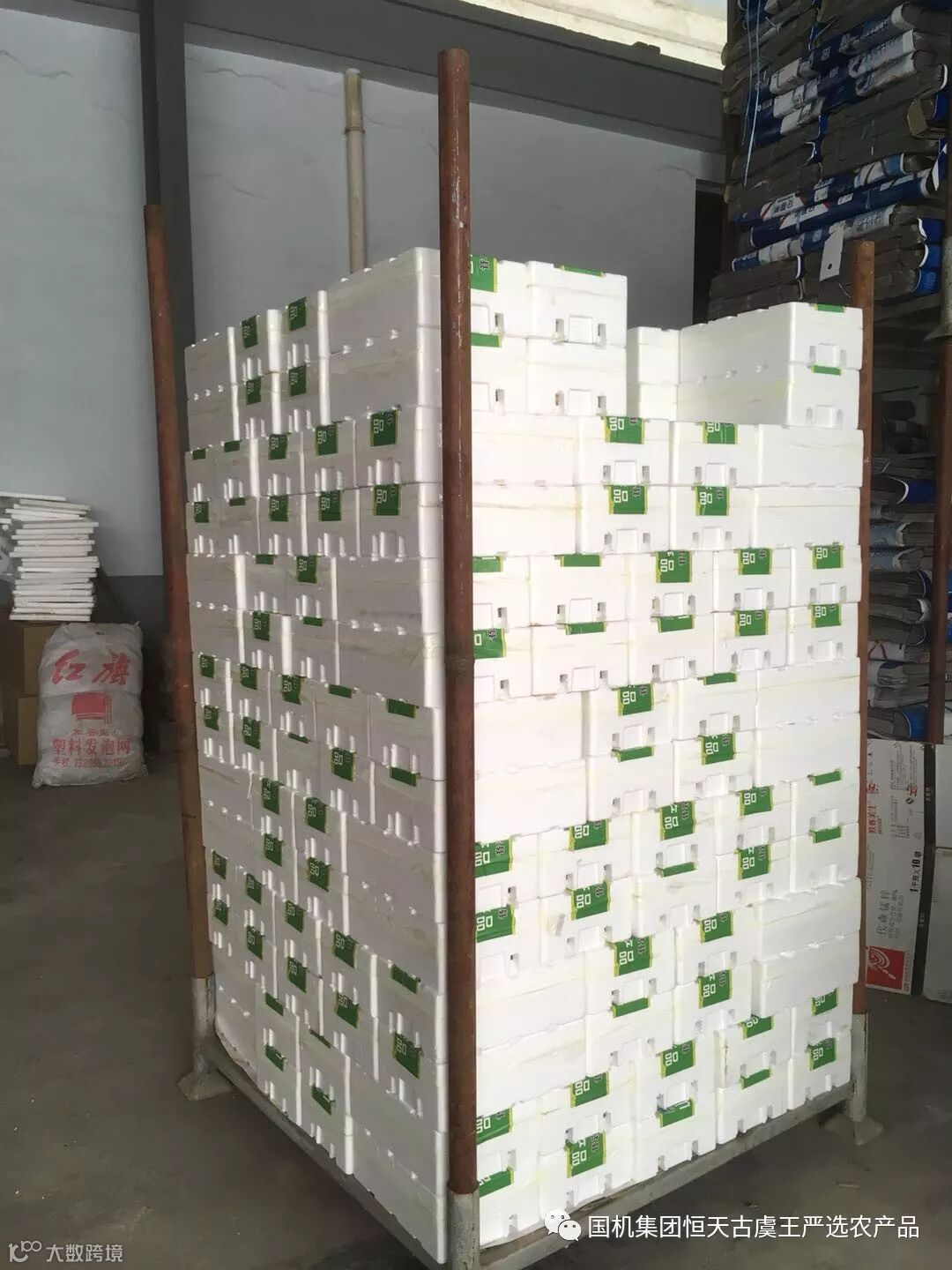 古虞王严选好货的故事第三批箱子整齐的卸在冷库 先合个影。
