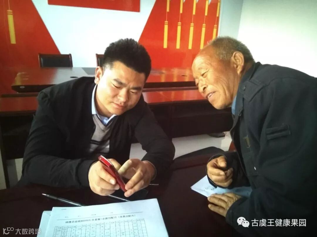 暖心一幕:神鹰高级农艺师军帅正在耐心教导农户使用手机关注神鹰农业公众号