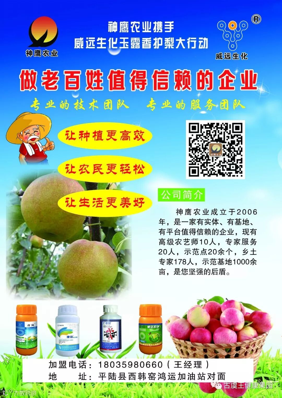 护梨行动,行动护梨。用真心换真心,用诚意换信任,神鹰农业&威远生化2018护梨行动之“梨梨在目”火热进行中,诚邀广大果农朋友们积极参与,加入神鹰的绿色大家庭,为美好的明天共同努力,拼搏!