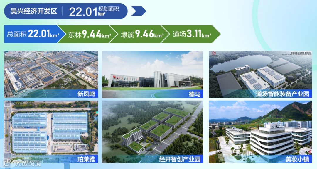 吴兴经济开发区:规划面积42.78 平方公里,分 A、B 区块,重点发展时尚美妆、高端装备、电子信息、半导体、新材料,海亮集团历年总投资达 50 亿元,立讯投资 20 亿元建设电子信息智能制造基地,东尼电子投资 11 亿元打造碳化硅半导体材料项目;