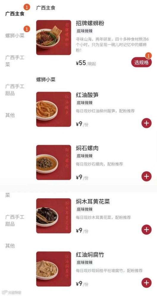 在产品架构上,鑼獅虽背靠源自广西的阿嬷手作,但并未局限于粉类,而是以广西菜+螺蛳粉为核心进行布局。螺蛳粉是招牌,但并非唯一主角。