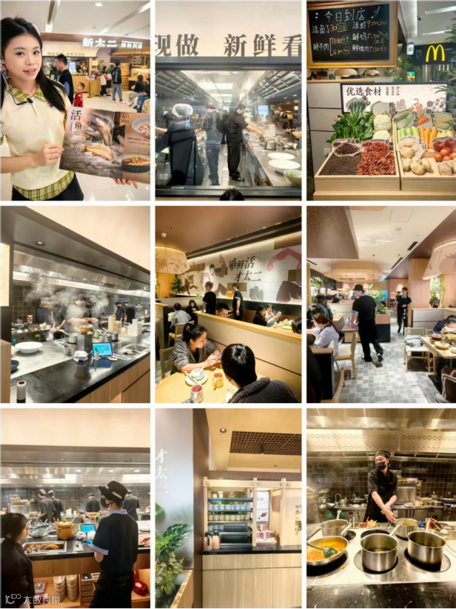 场景方面,一改过去的黑白漫画风,采用明档厨房和原木色调,环境更加明亮温馨。顾客可目睹活鱼现杀、鲜料现炒的全过程,将“新鲜”从口号变为可感知的体验。