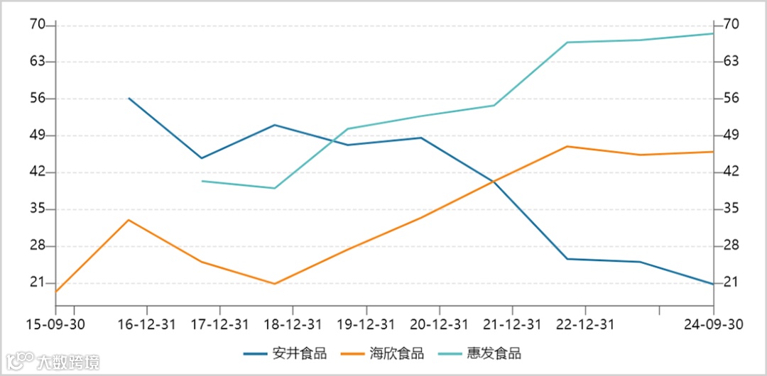A股三家冻品资产负债率走势图