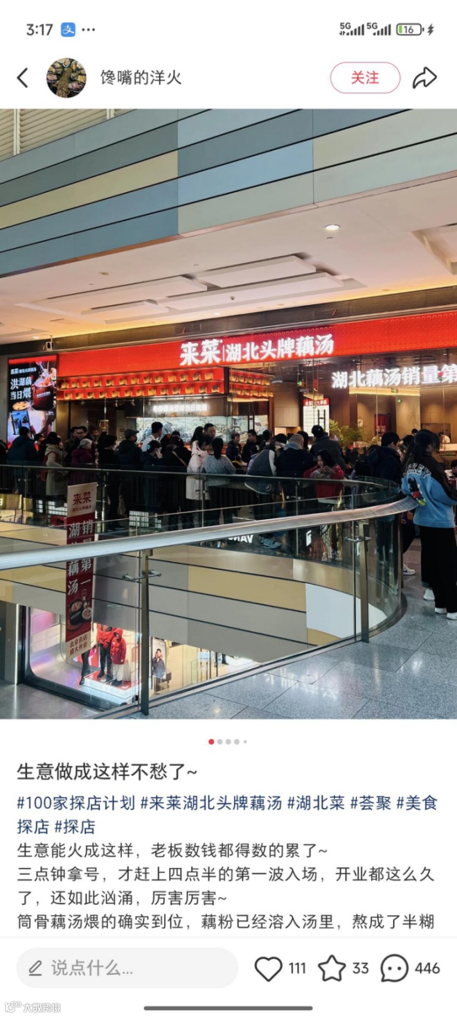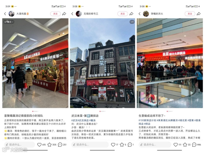 例如北京“来菜湖北头牌藕汤”的4家门店,日均客流稳定,排队效应显著;