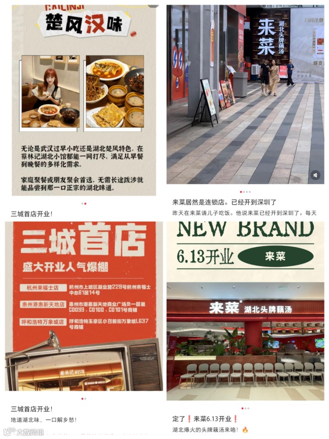 2025年5月至6月,楚菜头部品牌“来菜湖北头牌藕汤”以“红五月”为主题,在北京中关村、大望路、华融中心及清河万象城相继开出3家门店,与此前开业的聚会购物中心西红门店形成四店联动格局;此后又在西直门凯德Mall开设第五家门店,加速布局北京市场。