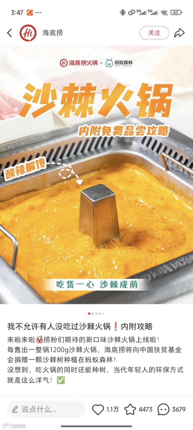海底捞也曾在北京、上海等地上线沙棘果锅底,精选中华沙沙棘熬制汤料并搭配果干,打造出色泽金黄、酸辣鲜美的特色口味。