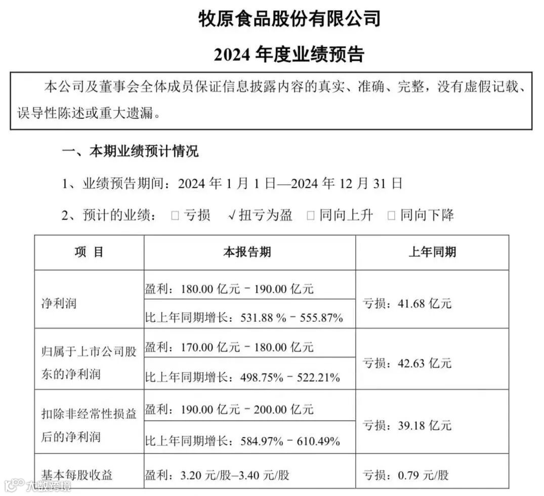 7、牧原股份:预计2024年归母净利润170亿元—180亿元,同比扭亏为盈