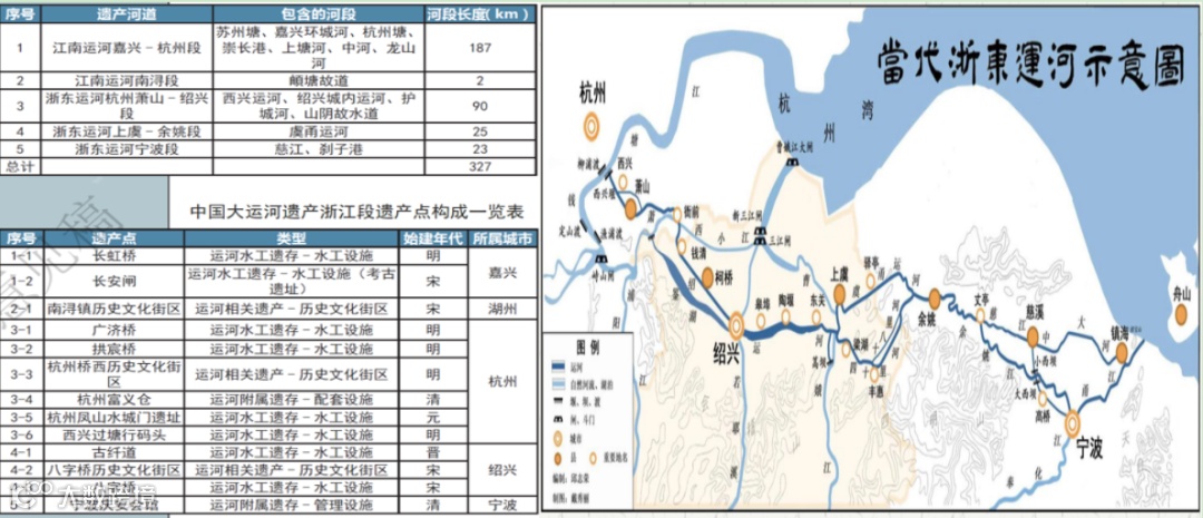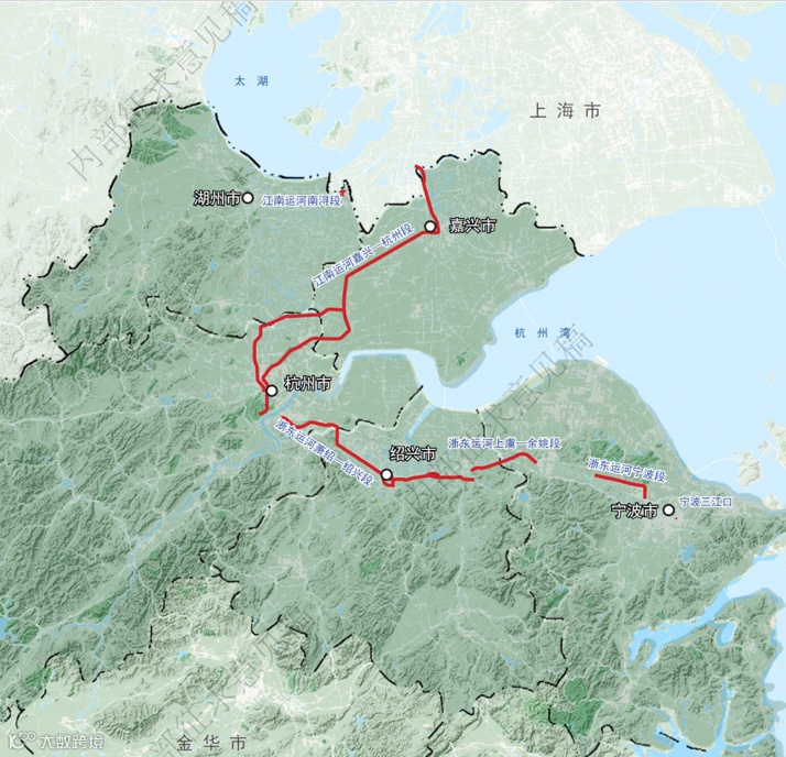 大运河浙江段包括江南运河浙江段和浙东运河及故道、复线等,穿行湖州、嘉兴、杭州、绍兴和宁波等5个地市,两岸历史文化遗存丰富,沿线名城古镇众多。