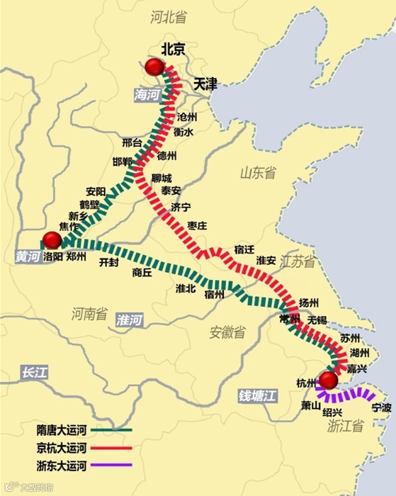 中国大运河包括隋唐大运河、京杭大运河、浙东运河等三部分。其中,京杭大运河是整个河段中“活性”最高、遗址最丰富、文化发展潜力最巨大的代表性河段。