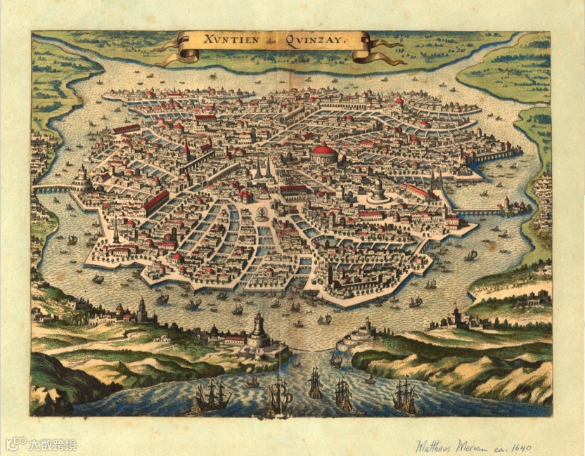 Matthew Merian绘制的杭州图(Xuntienalias Quinzay)1640