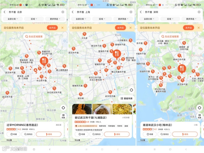 目前热干面逐渐走出了武汉,攻占了北上广等一线城市。如北京的丰记热于面、张记武汉热干面等,俘获了不少食客;上海的楚褚热干面、楚汉热手面,也备受好评;深圳的蔡林记热干面、加油热干面,也扎根区域多年,有不少粉丝。