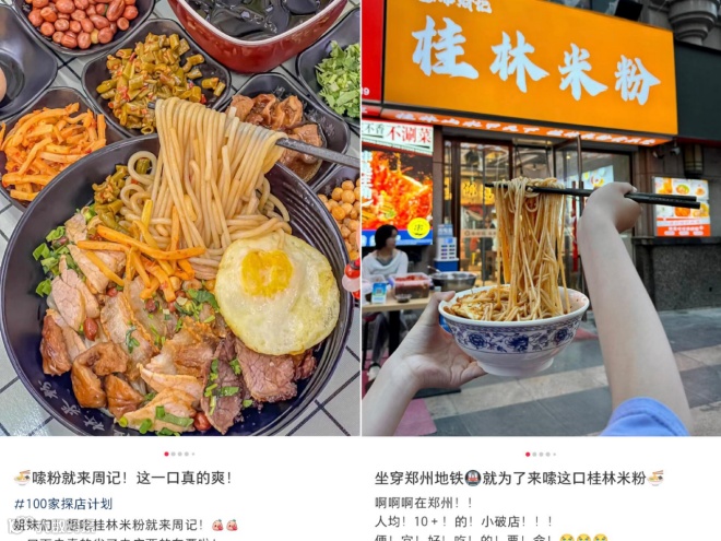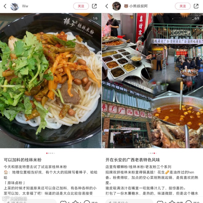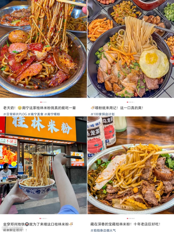 在抖音上,与桂林米粉相关的话题有近12.3亿人次围观;在小红书上,和它相关的种草笔记更是不计其数。