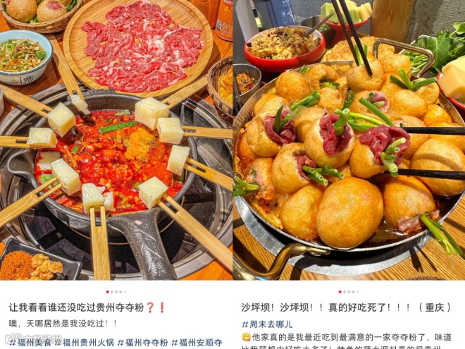 当下,夺夺粉正离开贵州,进军成都和重庆。大众点评显示,截至1月19日,重庆和成都的相关商户分别达132个、78个。