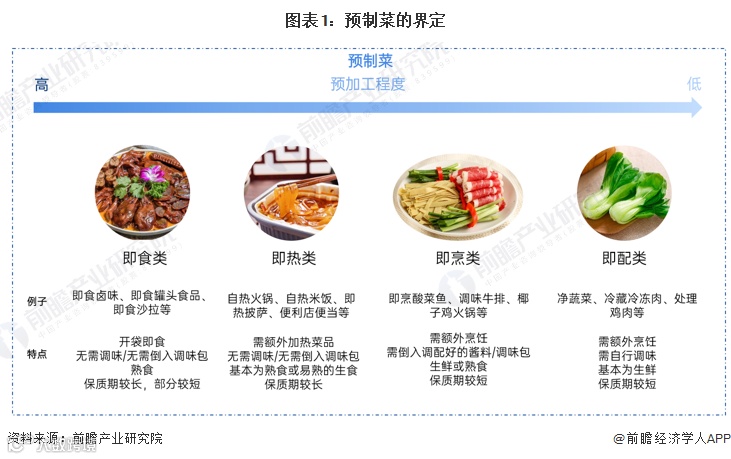 预制菜可根据预加工程度、菜肴后续处理、调味与否、生熟食以及保质期等综合参考后分为即食类、即热类、即烹类和即配类。