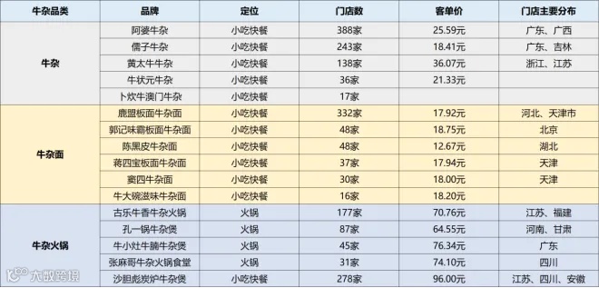 另一方面,通过特定区域的竞争,这些牛杂类品牌实现了规模化增长。为了实现错位竞争,它们采取了不同的策略: