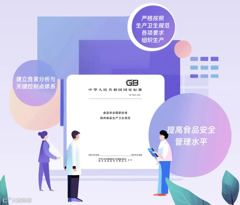 《食品安全国家标准 熟肉制品生产卫生规范》(GB 19303-2023)将于2024年9月6日正式实施。原《熟肉制品企业生产卫生规范》(GB19303-2003)同时废止。新标准规定了熟肉制品生产过程中原料采购加工、包装、贮存和运输等环节的场所、设施、人员的基本要求和管理准则。