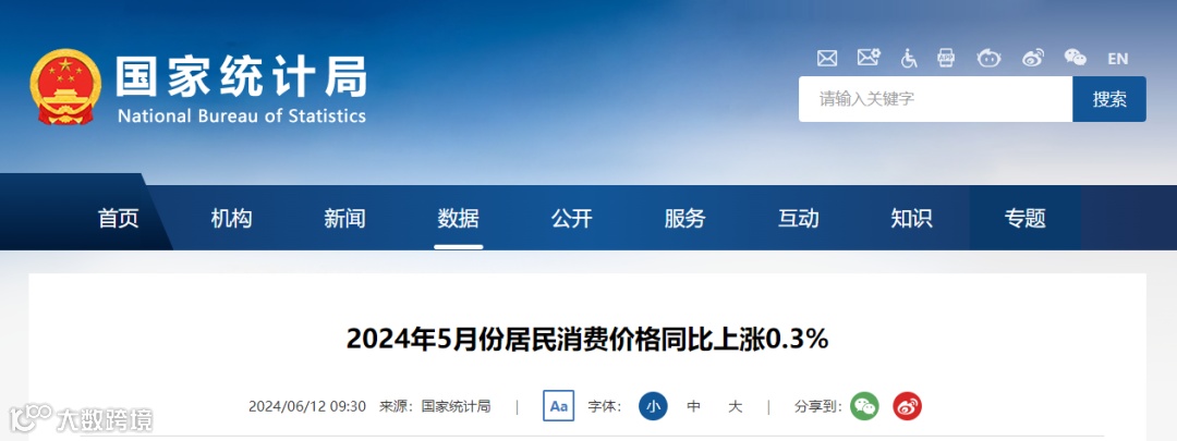6月12日,国家统计局发布数据显示,2024年5月份全国CPI(居民消费价格指数)同比上涨0.3%,环比下降0.1%。