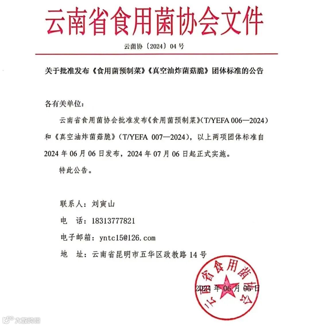 5、云南发布两项食用菌预制菜的团体标准,全力打造全国一流食用菌科研创新平台