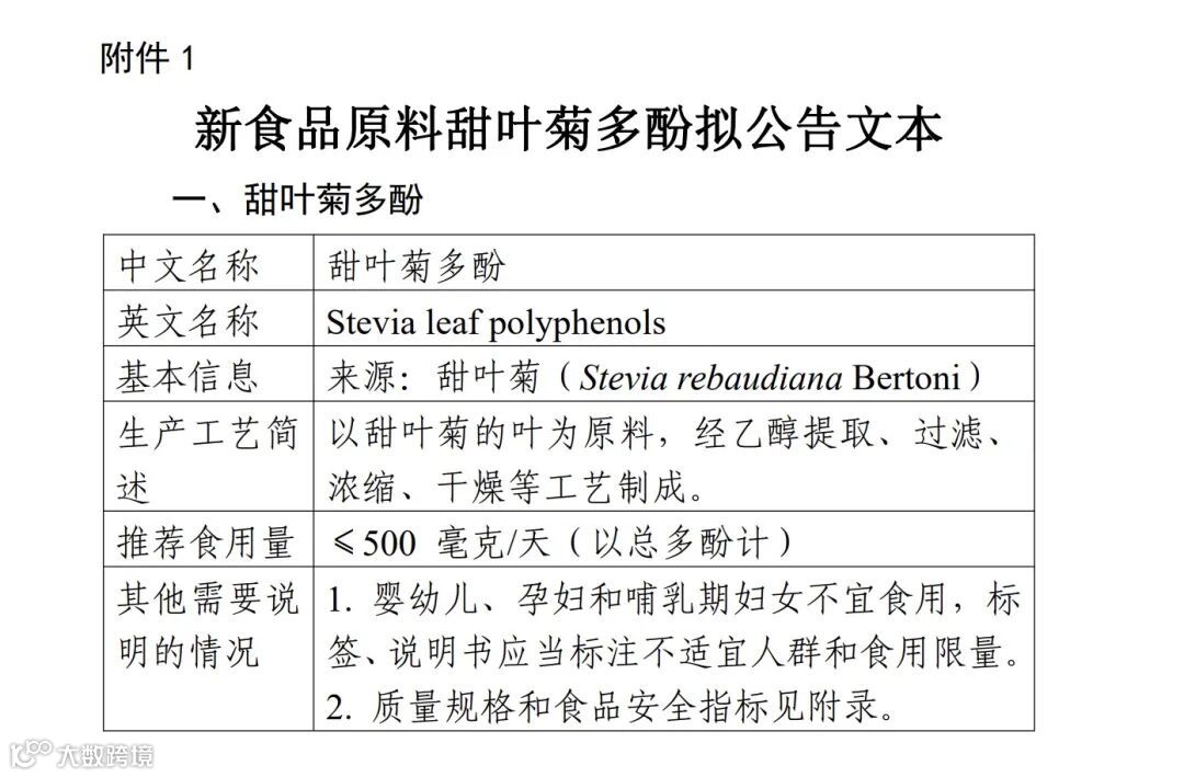 3、新食品原料甜叶菊多酚公开征求意见