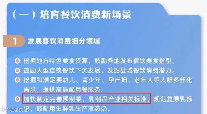 2、完善预制菜、乳制品标准写入国家发改委等部门通知
