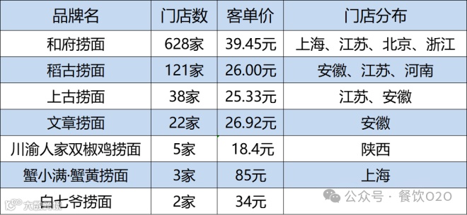 和府捞面,创立于2012年,通过“书房里的捞面”的独特概念,在上海、江苏、北京、浙江、广东等地开设了600多家门店,遍布25个省份,79座城市。稻谷捞面,于2018年成立,凭借“五谷好面,新鲜现炒”的鲜明口号,在安徽、江苏、河南等地也开设了121家门店。