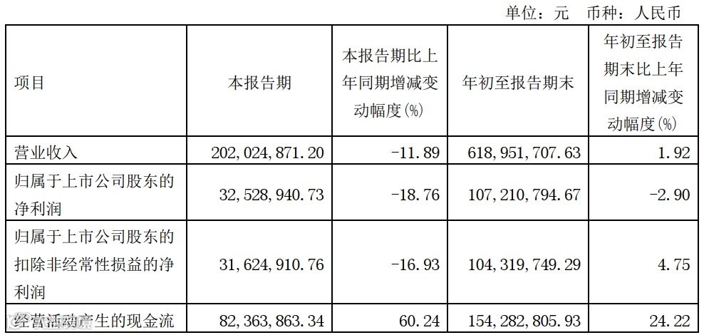 2023年前三季度,味知香实现营收6.19亿元,同比增长1.92%;归母净利润1.07亿元,同比下降2.90%。
