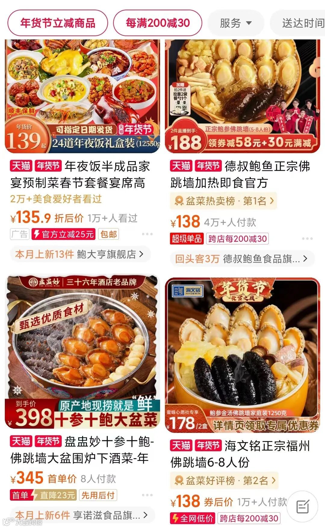 不过,市场却给出了相反的反应——在各线上平台,过年预制菜颇受欢迎,淘宝上多款佛跳墙礼盒的累计销量高达上万单;