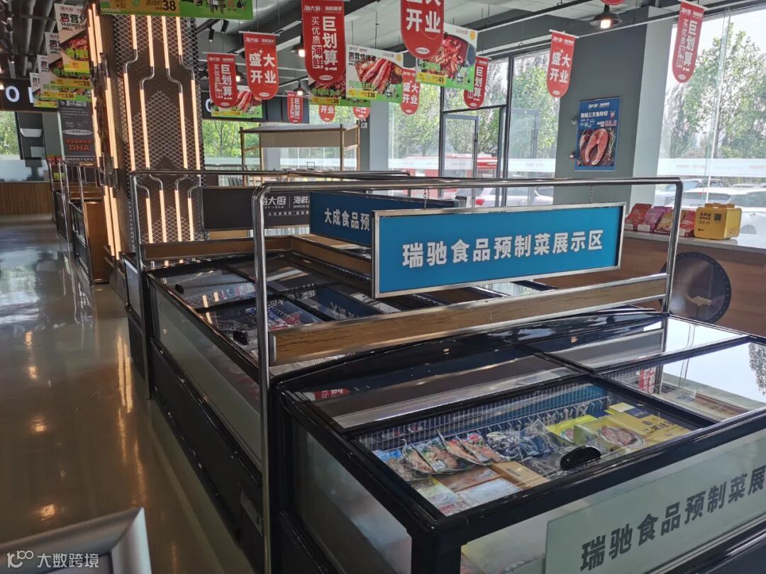 在预制菜体验厅,上百种产品在展台上陈列展示,预炸虾球、深海鳕鱼排、烟熏三文鱼、金汤酸菜鱼、烤鱼等海鲜预制菜,应有尽有。