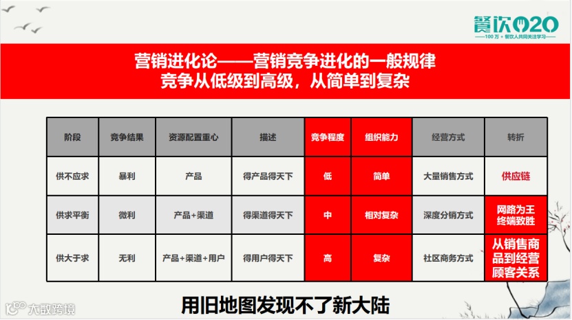 在认知上,我们餐企的经营者,头脑里还是用的旧地图,所以根本不可能发现新大陆。