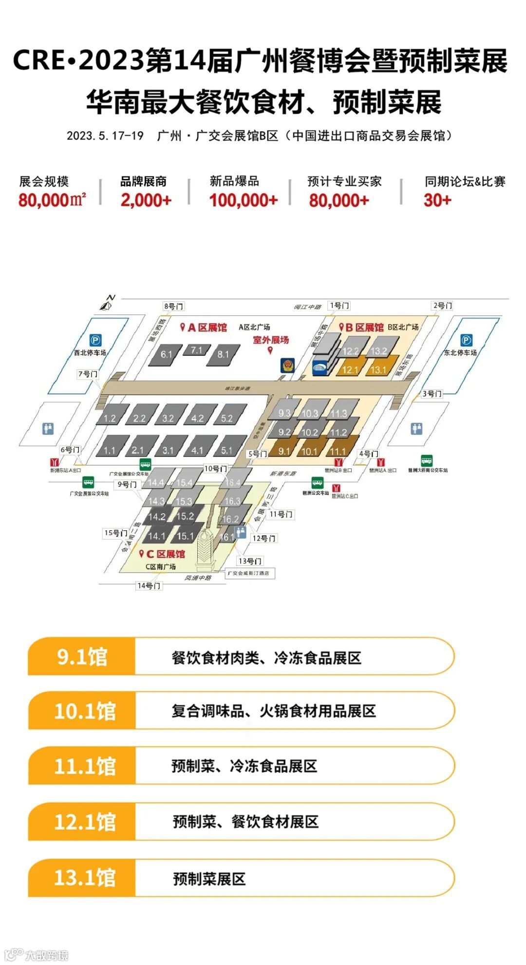 最值得期待的年度餐饮行业盛会——CRE·2023第14届广州酒店餐饮业博览会暨粤港澳大湾区餐饮预制菜产业展,即将于2023年5月17-19日,在广州·广交会展馆B区隆重开幕!