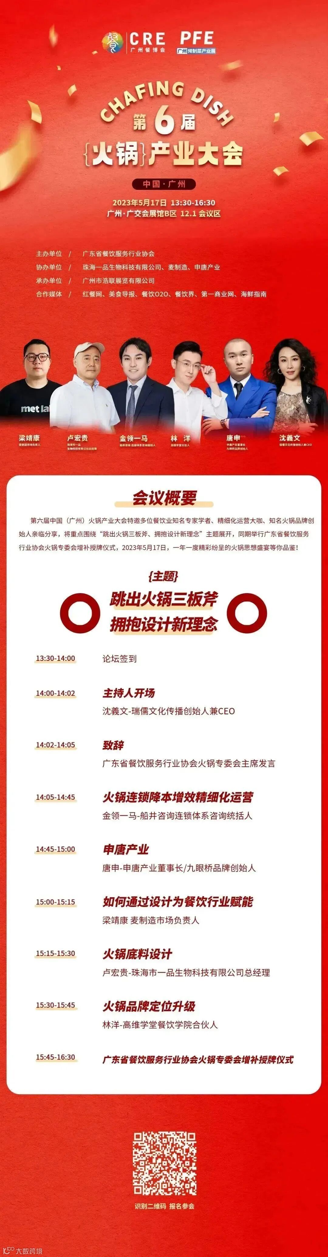 此次火锅产业大会特邀多位餐饮业之名专家学者、精细化运营大咖、知名火锅品牌创始人亲临分享,将重点围绕“跳出火锅三板斧,拥抱设计新理念”主题展开。