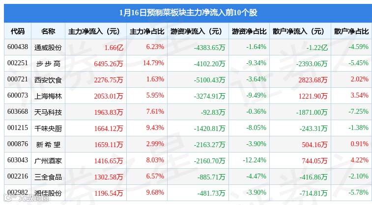 预制菜板块个股资金流向见下表: