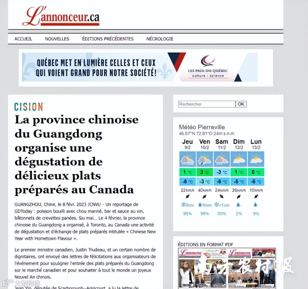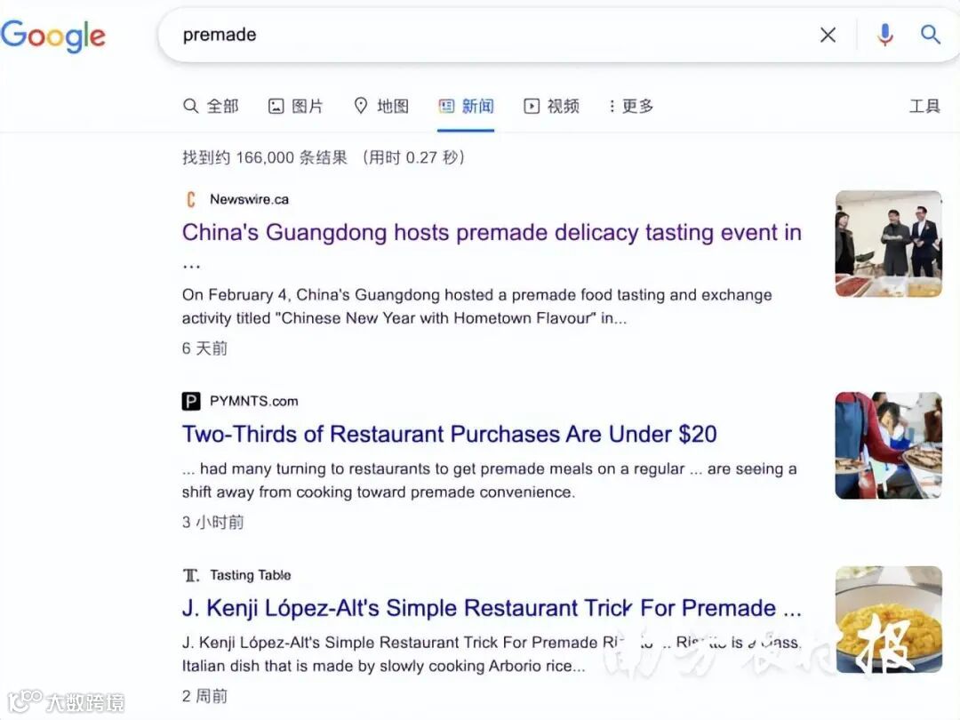 据了解,截至2月14日,跟广东预制菜美食文化相关的内容已被翻译成中英法葡多种语言,在海外超过50家媒体进行传播,影响覆盖约5000万人次,谷歌搜索“premade”相关词条,广东预制菜排在第一的位置。