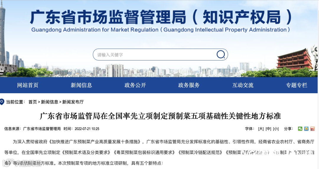 在市场监管层面,广东省市场监管局推动预制菜产业标准体系建设,加强预制菜知识产权建设,从严监管预制菜质量安全,助力预制菜产业高质量发展。