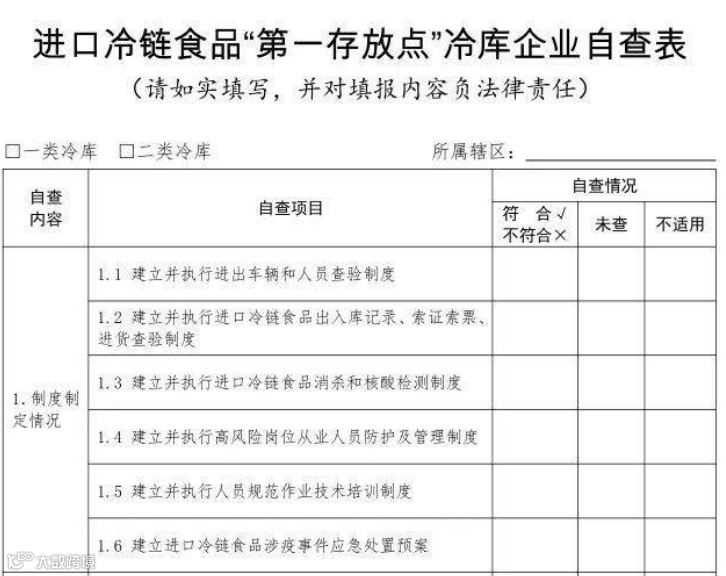 近日,为进一步落实进口冷链食品“人物环境”同防要求,规范上海市进口冷链食品“第一存放点”冷库企业线上督查工作,提高督查效率,特制定《上海市进口冷链食品“第一存放点”冷库企业线上督查工作指引》。