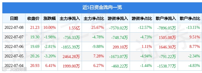 资金流向数据方面,7月8日主力资金净流入1.55亿元,游资资金净流出7570.02万元,散户资金净流出7896.05万元。