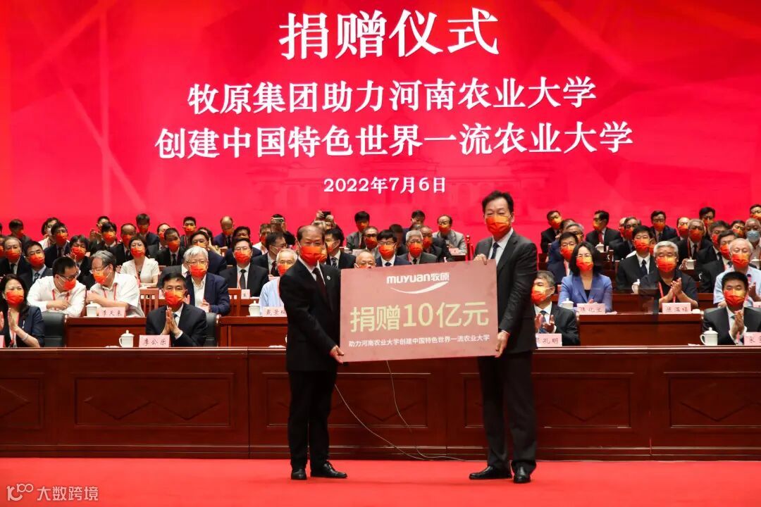 7月6日,河南农业大学120周年校庆之际,该校1985级校友、牧原股份董事长秦英林向母校捐赠10亿元人民币,助推河南农业大学向世界一流农业大学创建迈进。