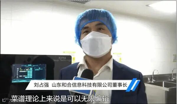 据山东和合信息科技有限公司董事长刘占强介绍:“这个炒菜机从开始到结束全程是不需要人参与的,菜谱理论上来说是可以无限编辑,现在有100多道菜,是没什么问题的。”