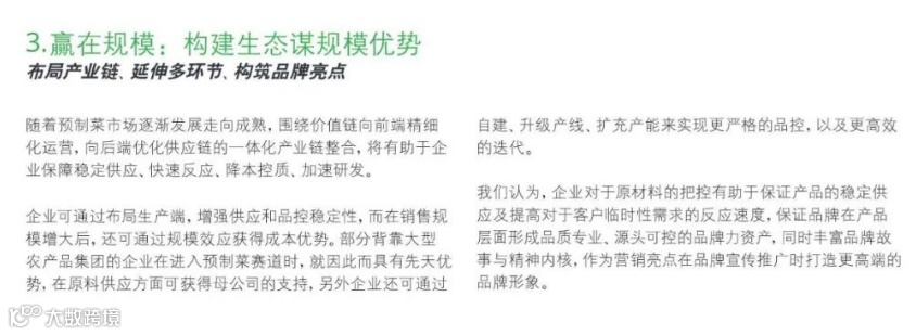 一家推出主打B端的中式预制菜的农业龙头企业, 涉足农产品种植、 配送、 净菜加工、 中央厨房、 电子商务等完整的供应链环节以保证食品安全。