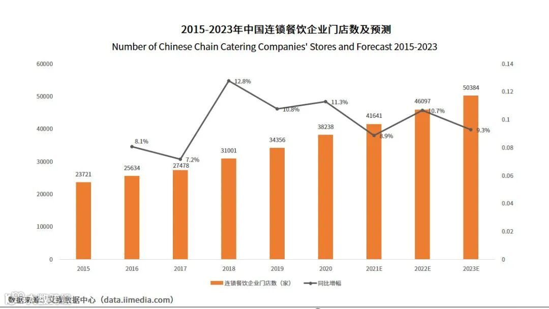 艾媒咨询认为,连锁门店需要标准化生产快速复制达到规模化,对于增效降本的需求高,预制菜食品能有效缓解厨房人员成本压力,连锁门店数量的上升预示着对预制菜品的需求量不断提升。