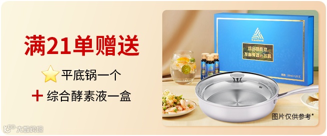 一次性购满21单,即可获赠【平底锅】*一个+【综合酵素液发酵果蔬汁饮料】*一盒。