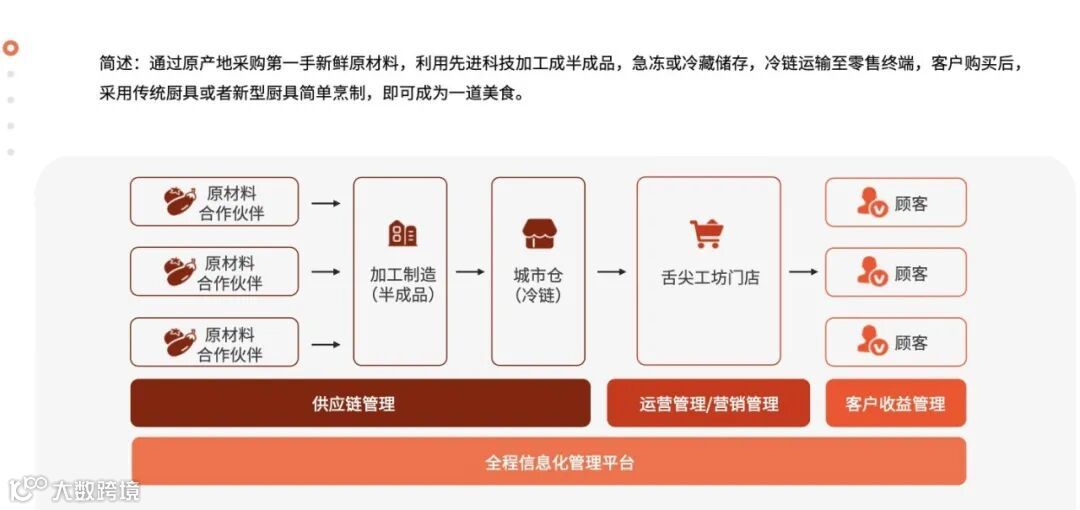 此外在食品安全的把控层面,舌尖科技通过信息化平台全程监控,从原产地、加工厂、冷链运输到门店运营,做到每个环节可溯源可管理。