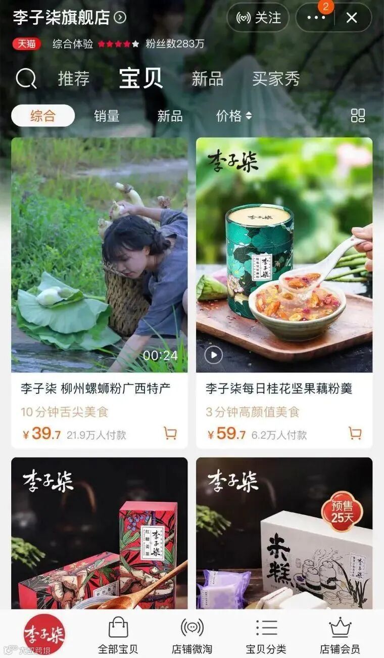 李子柒品牌在去年天猫双11时创下1.5亿销售额,截至7月27日,天猫店粉丝数突破619万。