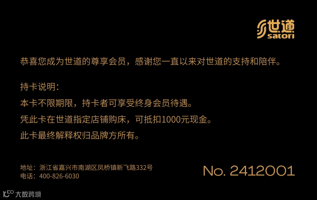 此卡仅限于在世道品牌直营店铺使用,不适用于授权渠道或第三方销售平台。具体直营店铺及官方线上渠道请咨询客服或关注官方信息。